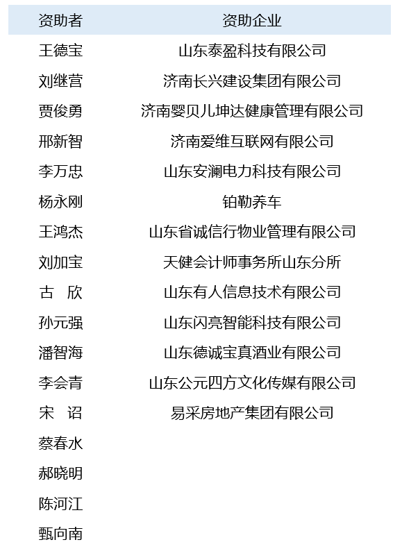 感谢以下企业与人士的爱心资助